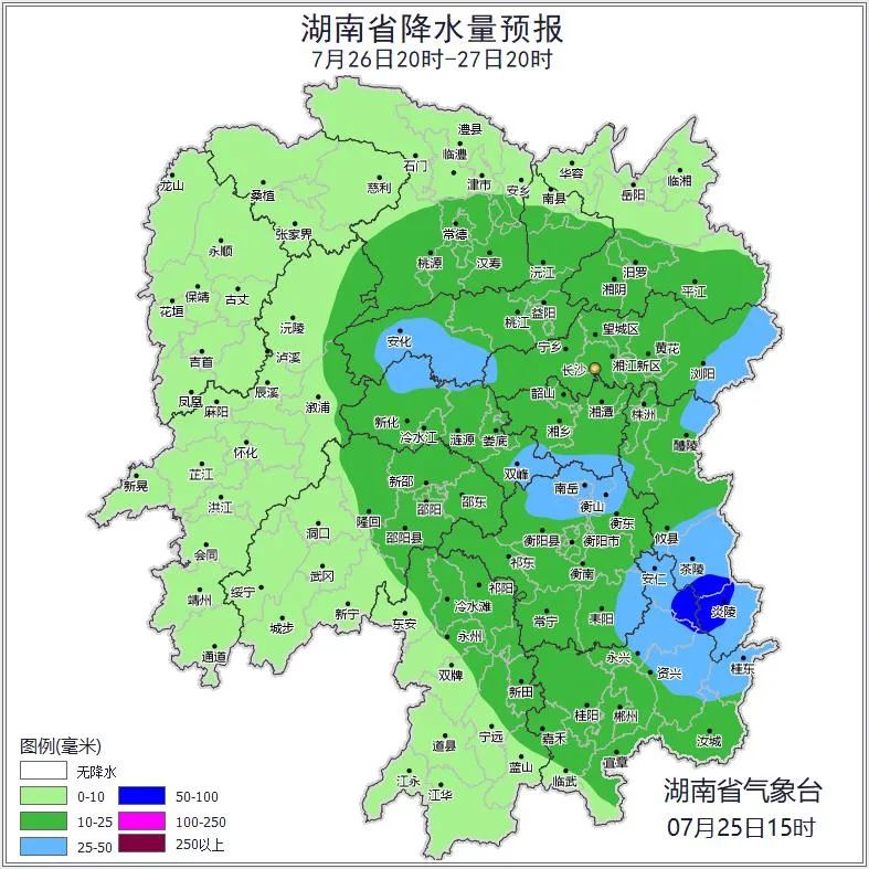 文章来源: 长沙警事 作者: 时间: 2025-07-26 11:56:52湖南省气象台预计